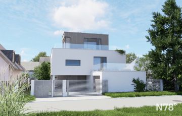 Návrh moderní vily v Praze využívá potenciál pozemku na maximum. Jednoduchý tvar a odvážná konstrukce umožňují komfortní bydlení ve dvou bytových jednotkách. Menší plocha zahrady je vyvážena střešními terasami. Objekt reaguje na okolní zástavbu tak, aby poskytoval dostatek soukromí jak majitelům, tak sousedům. Součástí projektu je i návrh vytápění tepelným čerpadlem s podlahovými rozvody.